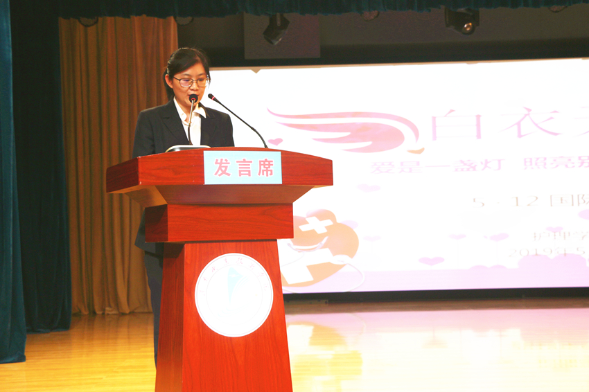 教师代表黄睿向即将走向护理工作岗位的白衣天使们致以节日的祝贺,向同学们提出了坚定护理工作信念、不断提升自身综合实力、发扬南丁格尔精神三点希望。学生代表康升向辛勤教育培养自己的各位老师表示了诚挚的感谢。她以自身经历为例,倡议同学们要以一颗同情的心和一双勤奋的手,以真心,爱心和责任心,为病人减轻痛苦。