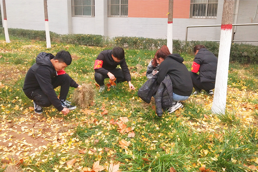 凛冬渐至,我院学生党支部组织团总支青年志愿者协会成员对公共楼前后绿化带的落叶、垃圾及宣传栏进行了清洁护理。青年志愿者协会部长耿泽雄带领10名学生志愿者清洁澳门电子pg游戏官网公共教学楼公各层楼厕所内的小广告,为学生们营造了安全文明的生活环境。苏建军带领红袖章志愿队和10余名学生志愿者清理了公共教学楼周围的白色垃圾,并对教学楼周围的宣传栏进行了彻底擦洗,让澳门电子校园环境展现新颜。(撰稿:澳门电子pg游戏官网 刘萌 审稿:吴亚飞)