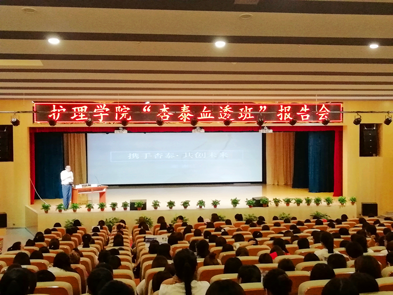 6月20日下午,澳门电子pg游戏官网在澳门电子图书馆报告厅举办了“杏泰血透班”报告会。杏泰国际贸易有限公司负责人、我院院长张文信、十余名专业教师和500余名学生代表参加了会议。报告会由张文信主持。