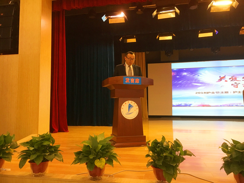 张文信代表学校作了大会致辞。他讲述了汶川地震时所在医院护理工作者先人后己的崇高品质,说明了护理工作的重要性,列举了近年来我院护理技能操作在省赛及国赛中获得的好成绩。他希望学生秉承南丁格尔精神,扎实技能,在护理岗位实现自身价值。