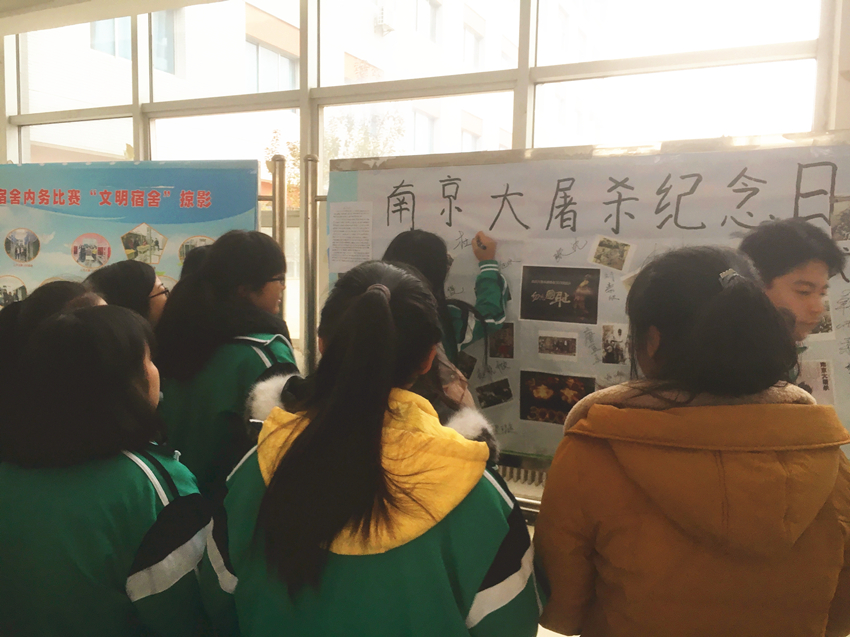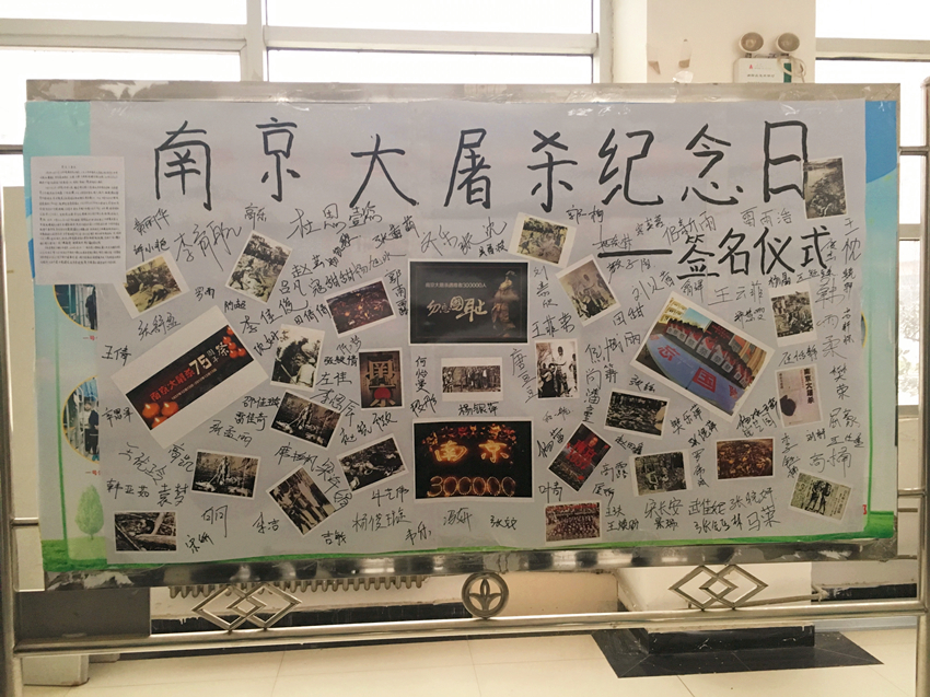 学生代表在南京大屠杀宣传海报上签名