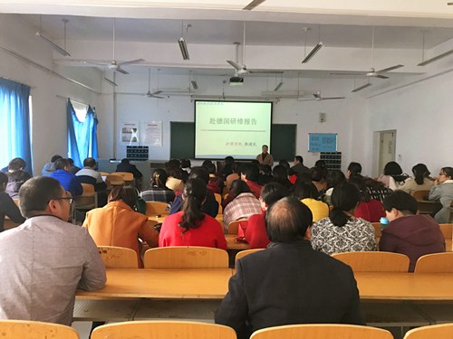 11月9日下午,澳门电子pg游戏官网内科护理教研室主任、专业带头人郭建民教授在公共教学楼公南202教室做了赴德研修报告。全体专业教师听取了报告。报告会由教学管理科副科长李晓乾主持。