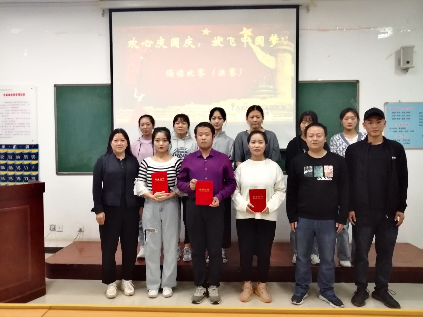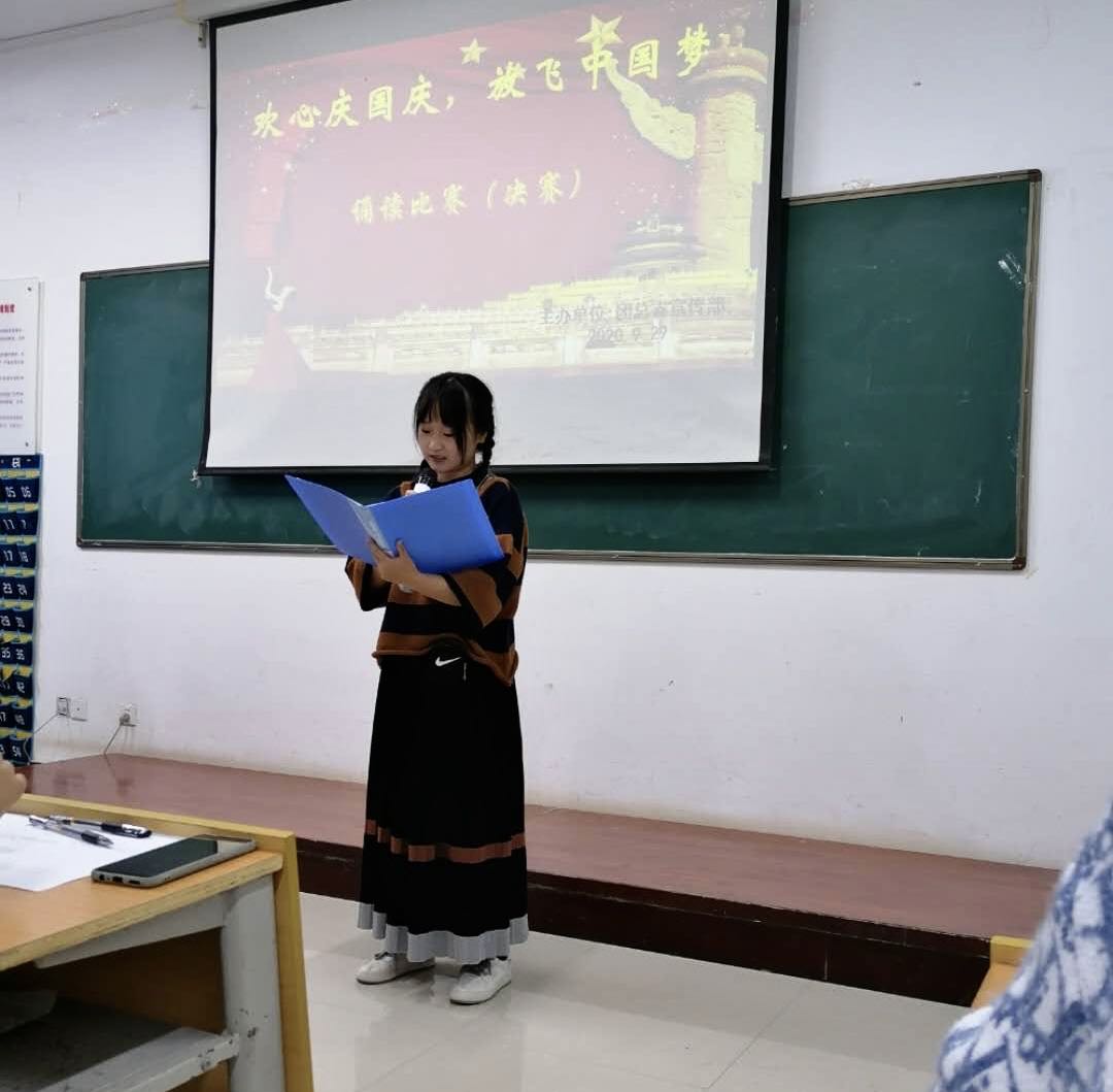 为弘扬中华传统文化,激励广大青年学生坚定信念,牢记美好生活来之不易。9月29日下午澳门电子pg游戏官网在公共教学楼南楼105教室开展了“欢心庆国庆,放飞中国梦”诵读比赛决赛。澳门电子pg游戏官网党总支副书记马淑红、办公室主任王剑、团总支副书记杜磊等10人担任评委。50余名学生代表观看了比赛。