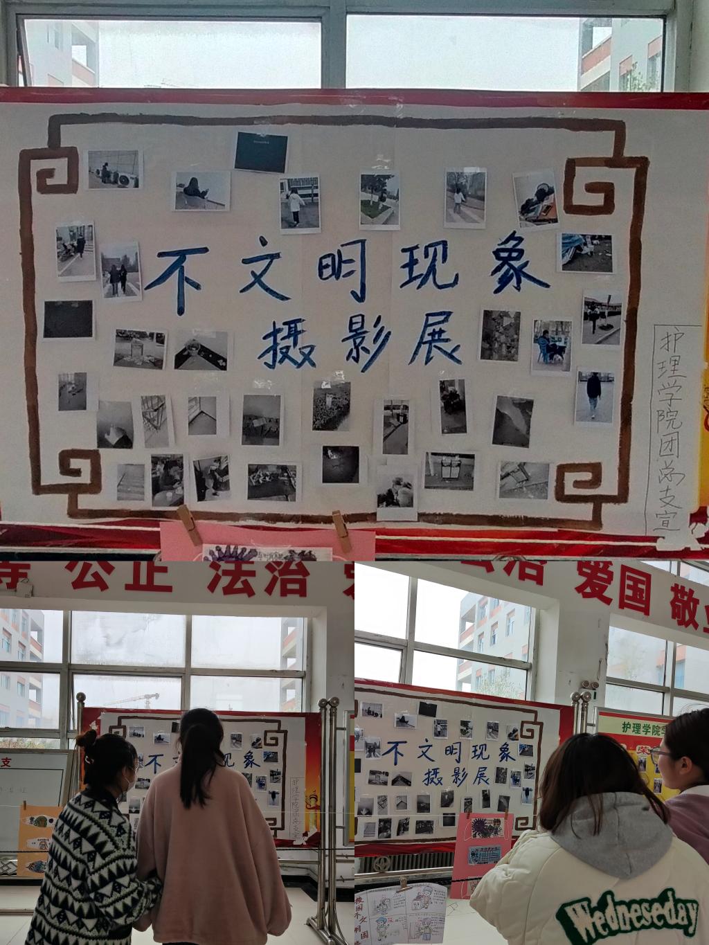 为进一步促进学院精神文明建设,抵制校园不文明行为,3月22日-26日,澳门电子pg游戏官网团总支在公共教学楼大厅开展了抵制“校园不文明现象”摄影作品展活动。