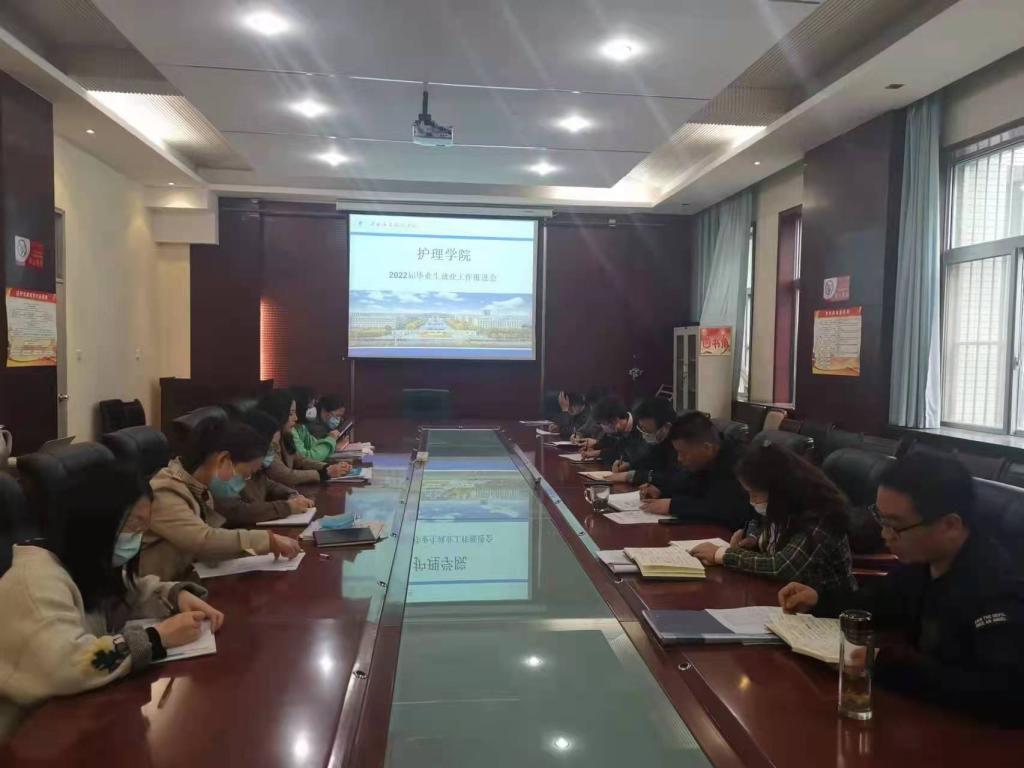 4月15日下午16点,澳门电子pg游戏官网在医训楼第一会议室召开了2022届毕业生就业工作推进会。澳门电子pg游戏官网党总支书记吴运胜、院长张成、党总支副书记马淑红,毕业班辅导员班主任,参加了会议。会议由澳门电子pg游戏官网党总支副书记马淑红主持。