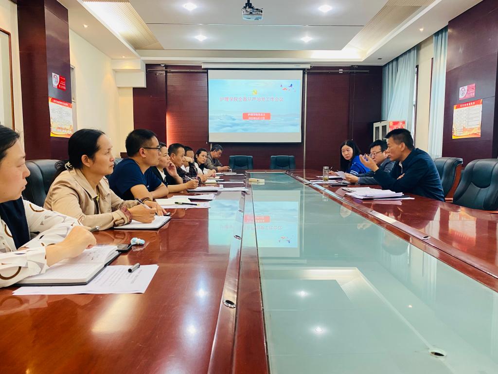 5月12日下午,澳门电子pg游戏官网在医训楼第一会议室召开了全面从严治党的工作会议。会议由党总支书记吴运胜主持,副科级以上干部参加了会议。会上,首先由张成院长传达教工委书记王建利对全面从严治党工作的部署安排和纪检监察组长赵军同志提出的具体要求。王建利书记强调,2022年是党的二十大召开之年,做好教育系统全面从严治党工作责任重大、意义深远。一是要加强党的政治建设,强化思想理论武装,坚决做到“两个维护”,坚定捍卫“两个确立”。二是要狠抓专项整治,扛实整改责任,注重整治成效,坚持标本兼治,着力解决教育领域突出问题。三是要持续正风肃纪反腐,紧盯“四风”整改,提升监督效能,营造良好政治生态。四是要坚持党建领航,坚持践行党委领导下的校长负责制。五是要守好意识形态主阵地,守好校园安全底线和校园疫情防线,确保教育系统安全。