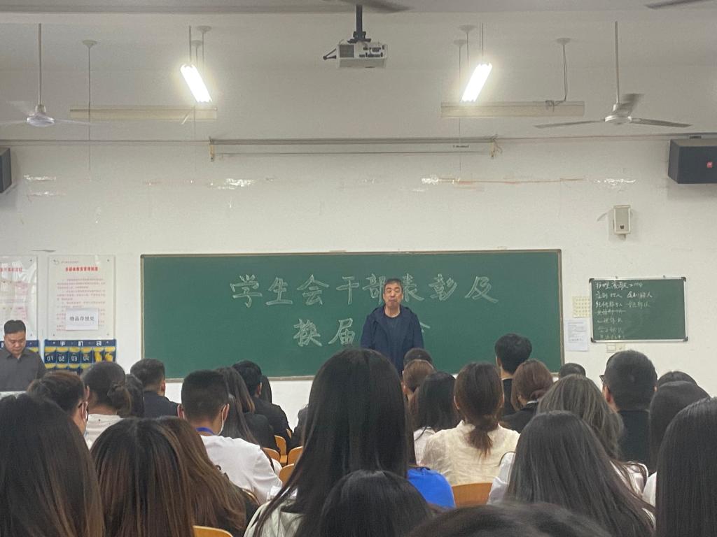 会上,学生会主席车鑫同学对2020-2021学年工作做总结报告,对其这一年担任职务中所获得的工作经验进行分享,介绍了学生会结构,宣读了学生会各部门工作职责,对新一届学生干部寄予希望。苏建军宣读了我院新一届学生会干部名单,为新任学生干部颁发了聘书,聘书代表了对他们工作的认可与肯定,也代表了他们的明天会更加辉煌!学生会副主席东旭博作为学生会新一届副主席上台发表了工作展望,感谢老师和上一届学生干部的栽培与指导,讲述自己的工作计划,向大家表达了决心。相信新一届的学生干部定会用汗水铸就荣耀,以实干笃定前行!李博要求学生会干部严于律己,努力学习,不断提高自身科学文化素养和道德修养,进一步发挥学生干部模范带头的作用,全心全意为同学服务。