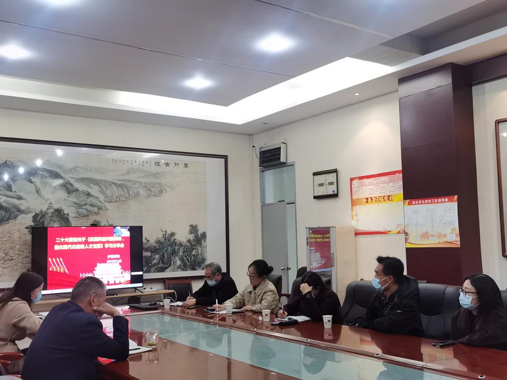 大会第一项,由孙会娟带领大家学习二十大报告关于《实施科教兴国战略,强化现代化建设人才支撑》文件精神。孙会娟要求各教研室要组织教师认真研讨交流,分享学习心得体会。