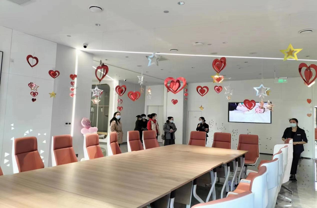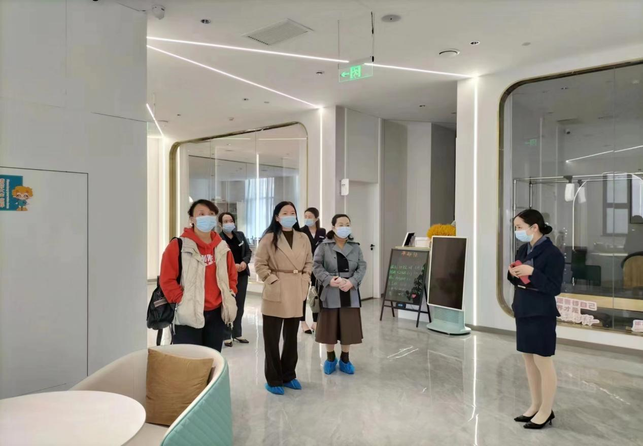 在集团副董事长张博、人事部经理李一妮等人的陪同下,澳门电子pg游戏官网一行4人参观了陕西纵享母婴管理集团母婴护理室、产后康复室、职工餐厅、宿舍等区域。