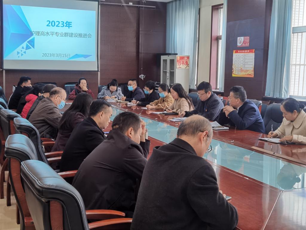 3月15日下午,护理高水平专业群建设推进会在澳门电子pg游戏官网第一会议室召开,澳门电子pg游戏官网党总支书记吴运胜、澳门电子pg游戏官网院长张成、澳门电子pg游戏官网副院长吴亚飞和任秋爱、双高任务各小组长及各教研室主任参会,会议由任秋爱主持。