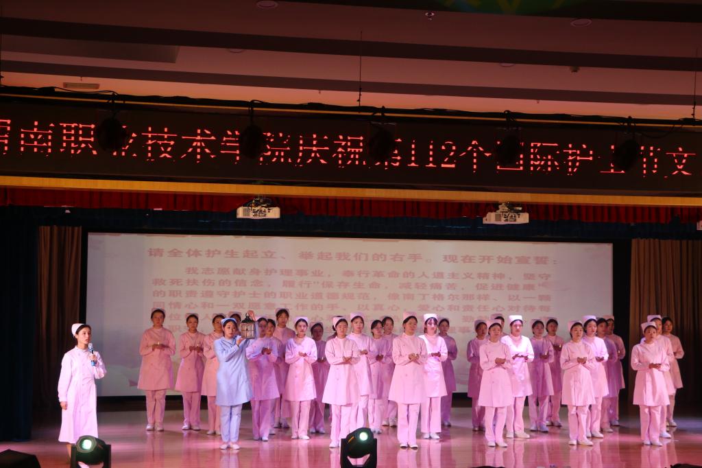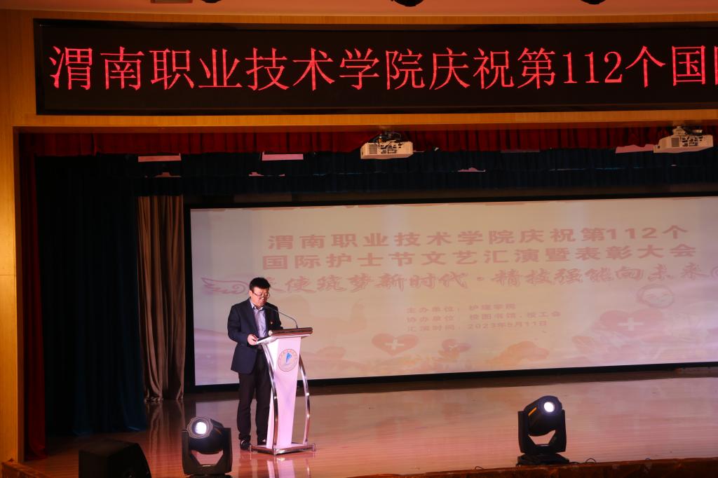 为学习宣传贯彻党的二十大精神,庆祝第112个国际护士节,以大爱谱写南丁格尔精神时代华章,激励广大护理师生在新时代、新征程中展现新作为,5月11日下午,澳门电子pg游戏官网在图书馆报告厅举办了“天使筑梦新时代、精技强能向未来”——庆祝第 112 个国际护士节文艺汇演暨表彰大会。党委副书记、院长靳华锋,副院长杨宇清,纪委书记张国栋等学校领导,澳门电子pg游戏官网党总支书记吴运胜、院长张成及各处室、各二级学院负责人,澳门电子pg游戏官网500余名师生代表参加了活动。