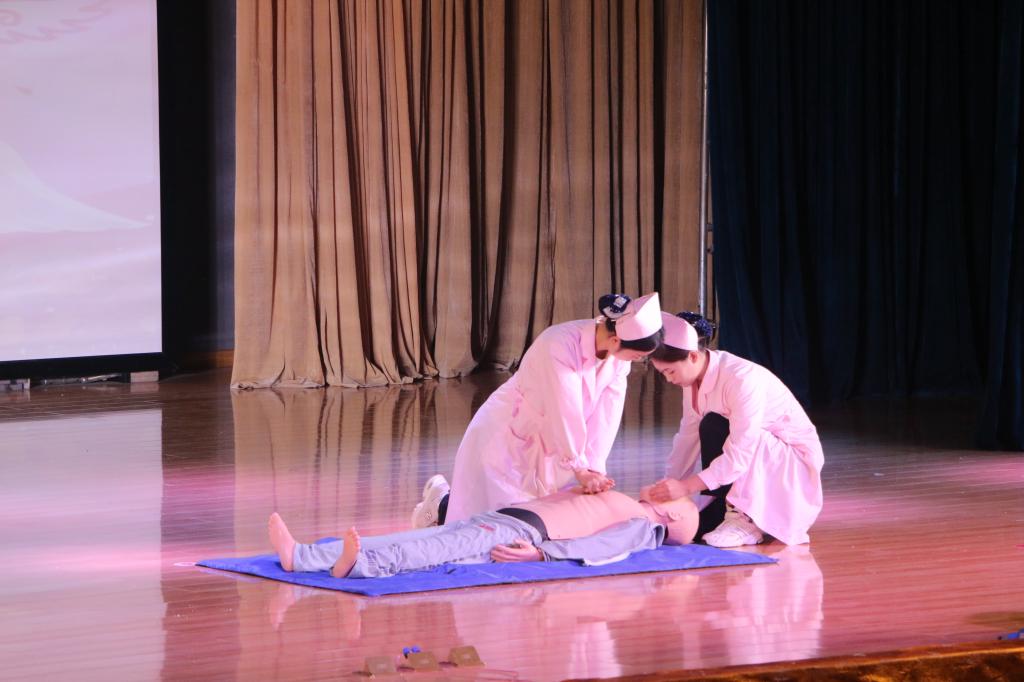 压轴节目歌伴舞《中国护士之歌》响起,在场师生齐声同唱,唱出了护理学子的心声:中国护士大爱无疆,用奉献浇灌生命,让青春永远绽放!声音响彻整个报告厅,活动圆满落下帷幕。