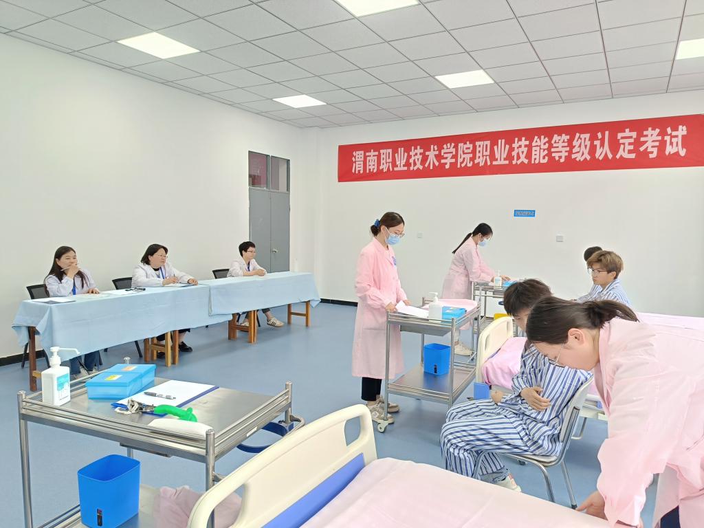 2023年5月21日,澳门电子pg游戏官网在高新校区为即将步入实习岗位的学生开展失智老人照护员职业技能等级认定考试,这也是我院首次开展人社部门职业技能等级认定。本次认定考试以理论知识考试和技能水平考核相结合的方式进行,共认定68人次。按照《养老护理员国家职业技能标准》有关要求,理论考试着重考核基础护理内容及职业道德知识,考试时间为90分钟;实操考试内容包含生活照料、基础照护、康复护理等方面的操作技能,共3项操作,由专业考评员进行考核。两项考试均实行百分制,每项60分以上为合格。