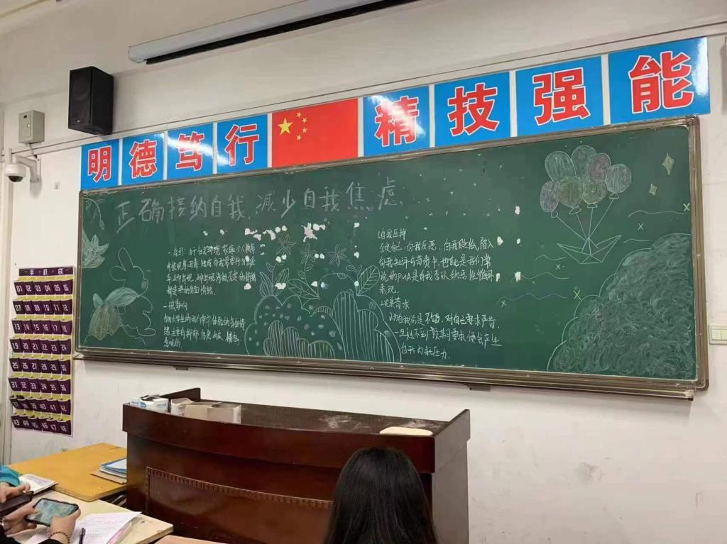 课上,心理委员从自我焦虑的概念、产生原因、不良影响以及改善焦虑的方法等方面展开讲解;并以“先入为主”的心理学效应引导同学正视自我、肯定自我并接纳自我,拒绝焦虑,做自己心理的主人。课堂上同学们畅所欲言,并分享自我感悟,并提出“学会给自己的心理放假,‘轻松一夏’”的口号,做阳光青年。