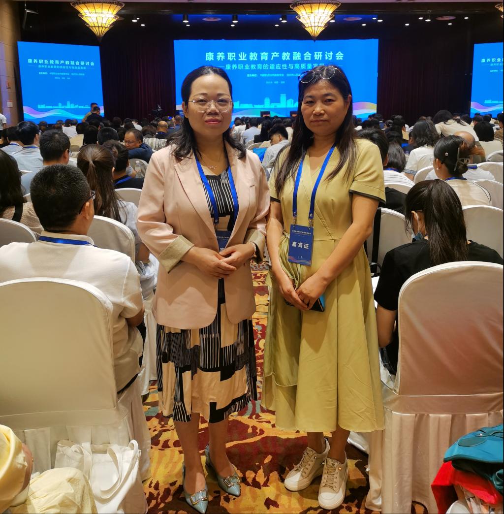 为统筹解决康养领域人才培养和产业发展“两张皮”问题,推动康养职业教育产教融合高质量发展,正逢6月8日国家发改委、教育部、人社部等8部门联合印发《职业教育产教融合赋能提升行动实施方案(2023—2025年)》之际,由中国职业技术教育学会、沧州市人民政府主办的康养职业教育产教融合研讨会于6月14-15日在河北沧州隆重举行。澳门电子pg游戏官网教学科副科长孙会娟和解病教研室主任张小红赴沧州参加了此次研讨会。