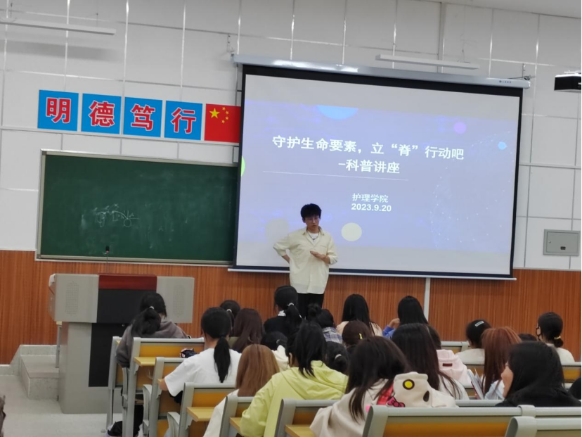 为促进青少年养成良好的生活习惯,预防脊柱侧弯的发生,9月20日晚,澳门电子pg游戏官网青年教师乔勤峰在综合楼405为200多位学生进行了“预防青少年脊柱侧弯”科普知识讲座。
