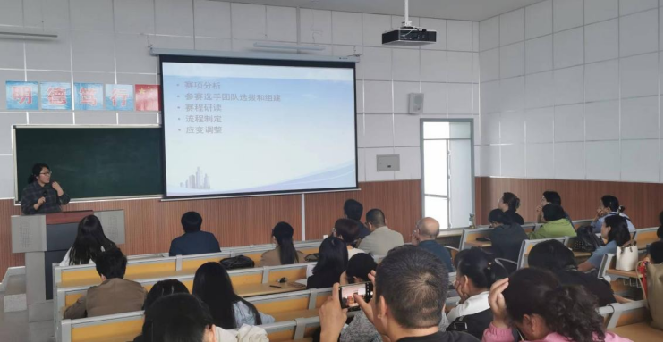 2023年9月27日下午澳门电子pg游戏官网在综合楼405召开了技能大赛分享交流会,澳门电子pg游戏官网院长张成、副院长任秋爱和全体教师参加了会议,会议由澳门电子pg游戏官网副院长吴亚飞主持。