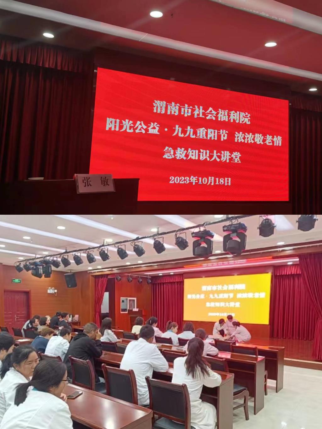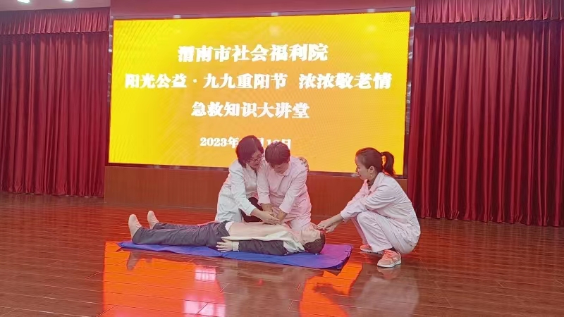 为弘扬敬老爱老的优良传统,丰富辖区老年人的精神文化生活,在九九重阳节来临之际,受渭南市社会福利院邀请,澳门电子澳门电子pg游戏官网教师张敏参加了“阳光公益·九九重阳节 浓浓敬老情急救知识”大讲堂活动,助力我院双高建设。她通过“心脏骤停的患者如何做心肺复苏?气道异物梗阻的患者如何救护?”等两部分为大家详细介绍了如何判断心脏骤停,心脏骤停后的胸外按压、开放气道、人工呼吸等方法及气道异物梗阻的原因、表现、海姆立克急救法的原理、操作方法等。为了让大家更好的掌握这些知识,让护理员切身体验操作的方法,张敏在现场给予详细、耐心的实操指导。