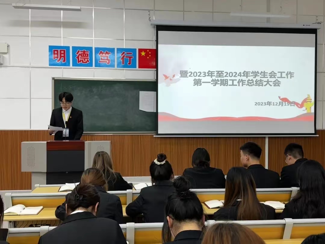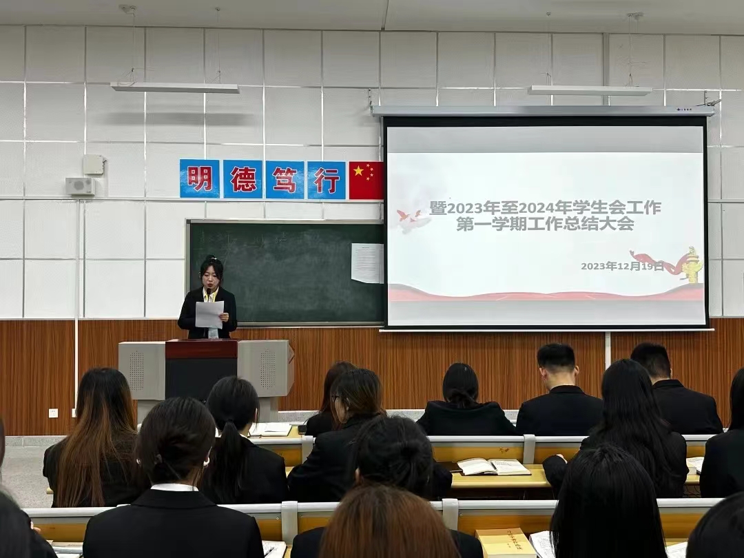 为回顾总结过去一学期学生会及相关部门的工作,深入剖析存在的问题,全面提升学生会工作能力,更好服务学生,澳门电子pg游戏官网于12月19日召开2023—2024届学生会第一学期工作总结大会。会议由主席团成员苏可心主持,澳门电子pg游戏官网全体学生会干部以及学生会代表参加。