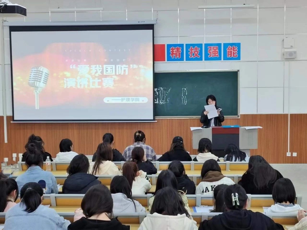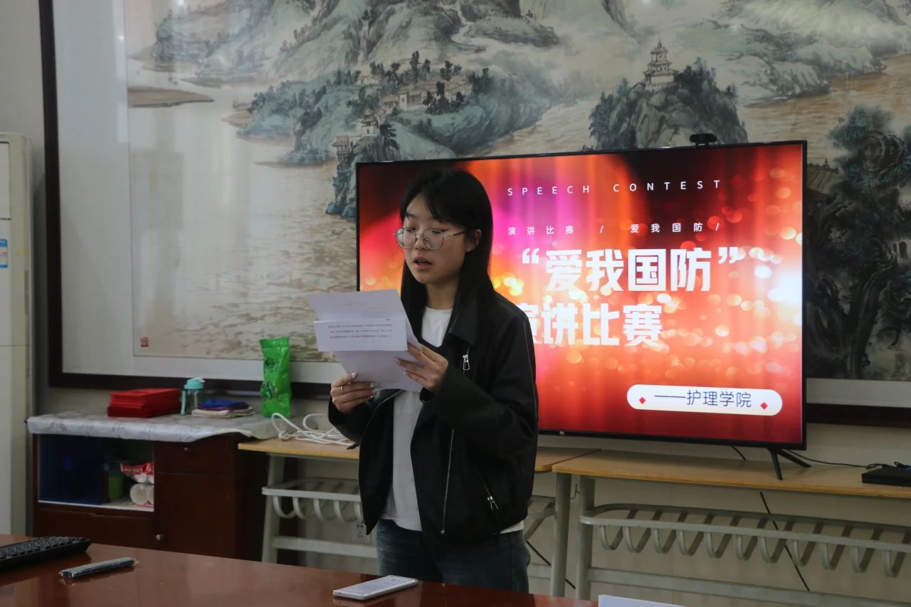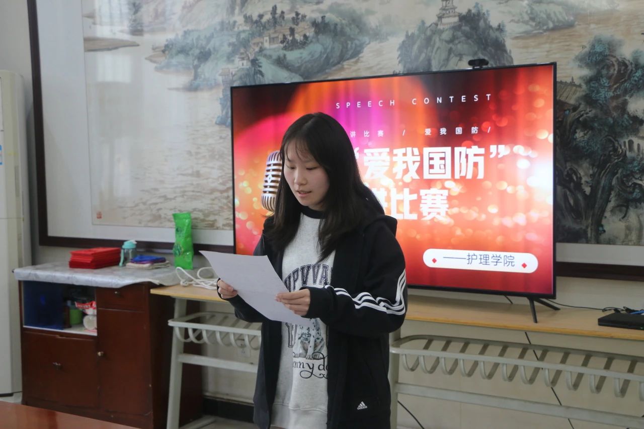 本次“爱我国防”主题演讲比赛,普及国防知识,强化国防观念,引导广大青年学生自觉把个人理想融入国防和军队现代化建设,激发爱党爱国之情和报国之志。也充分展示了护理学子关心国防、热爱国防的热情以及建设国防、保卫国防的决心。(撰稿:李怡明 审核:周梦花)