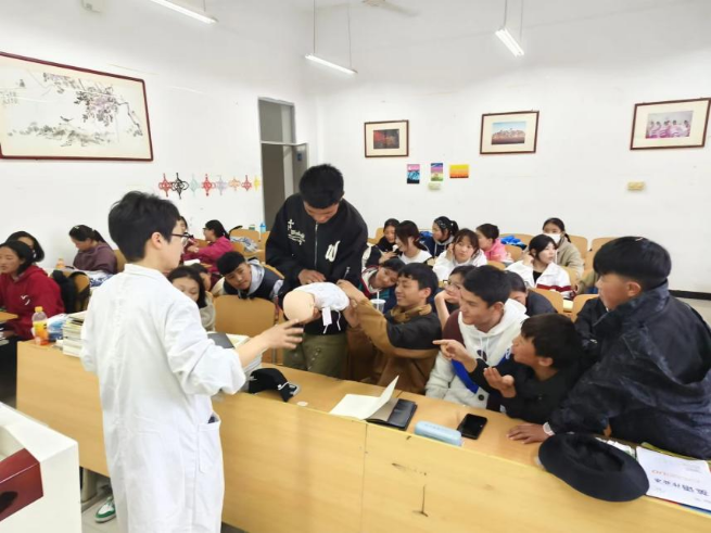 关注民族团结和谐,关爱少数民族学子。为进一步发挥医护教师党员专业特长,宣传普及基本健康知识,关心少数民族学生的健康教育,4月9日澳门电子pg游戏官网吴越、陈芳两名老师分别向澳门电子23级阿里班37名学生进行了急救相关理论与实践操作技能的讲授与演示。