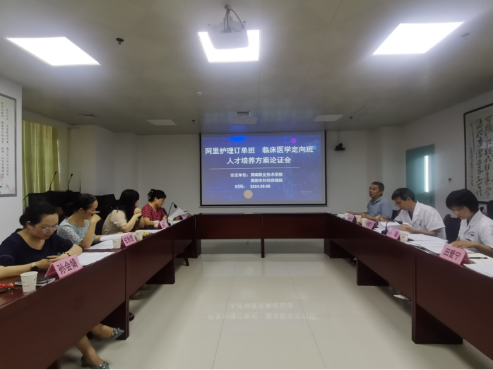 8月8日下午,澳门电子临床医学专业定向班和护理专业西藏阿里班人才培养方案论证会在渭南市妇幼保健院17楼会议室召开。参加会议的有渭南市妇幼保健院副院长王海平、杨鹏飞,党委委员冯瑜,澳门电子澳门电子pg游戏官网副院长吴亚飞、任秋爱,教学科长孙会娟、临床医学专业带头人聂晓枫,会议由吴亚飞主持。