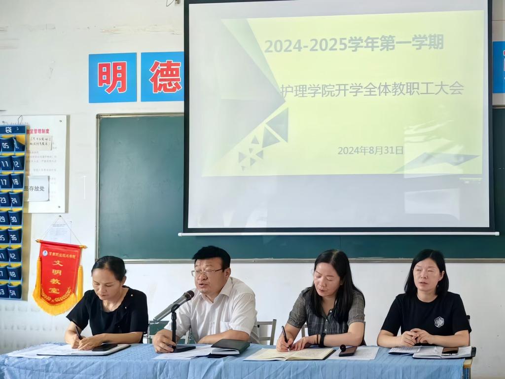 8月31日上午10时,澳门电子pg游戏官网在公南105教室召开新学期开学工作会议,安排部署新学期重点工作任务,明确新学期教育教学工作目标和方向。会议由副院长任秋爱主持,全体教职工参加会议。