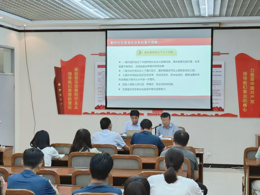 张成最后总结并给大家提出四点要求:一是加强组织领导,各部门、支部组织好党员和广大教师的理论学习。二是把握正确政治方向,牢牢坚持党性原则。三是持续推进重点工作,推动学校高质量发展。四是全力营造良好改革氛围,形成全员参与、共同推进的良好局面。(撰稿:穆珍珍 审核:周梦花)