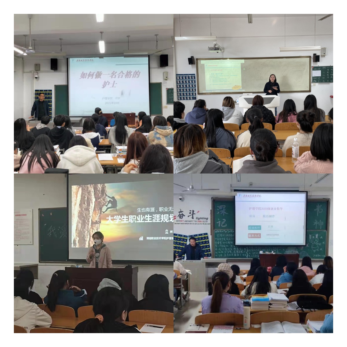 课程分两部分,一是针对2020级护理高职、五年制护理及助产高职2020级等学生开展《就业指导》相关理论的教学和实践指导,采取课堂教学与课外实践相结合、集体传授与个性辅导相结合、线上线下相结合等方式,帮助学生了解相关专业基本情况、培养目标、往届毕业生就业情况、本专业职业市场前景等,使学生初步形成正确的就业观念,先择业,后就业,再创业;二是针对2021级护理高职、五年制及助产高职、五年制学生开展《职业生涯规划》相关理论教学和实践指导,帮助新生适应大学的学习生活,强化自我管理,提高自主学习能力,积累专业知识,提高专业能力,树立正确的人生观、价值观、世界观,明确人生的奋斗目标,合理规划个人职业生涯。