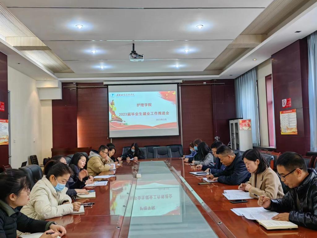2月27日下午16:30,澳门电子pg游戏官网在医训楼第一会议室召开了2023届毕业生就业工作推进会。澳门电子pg游戏官网党总支书记吴运胜、院长张成、党总支副书记周梦花、学生科副科长姚飞、招生就业科副科长何宇以及毕业班毕业班辅导员、班主任参加了会议。会议由周梦花主持。