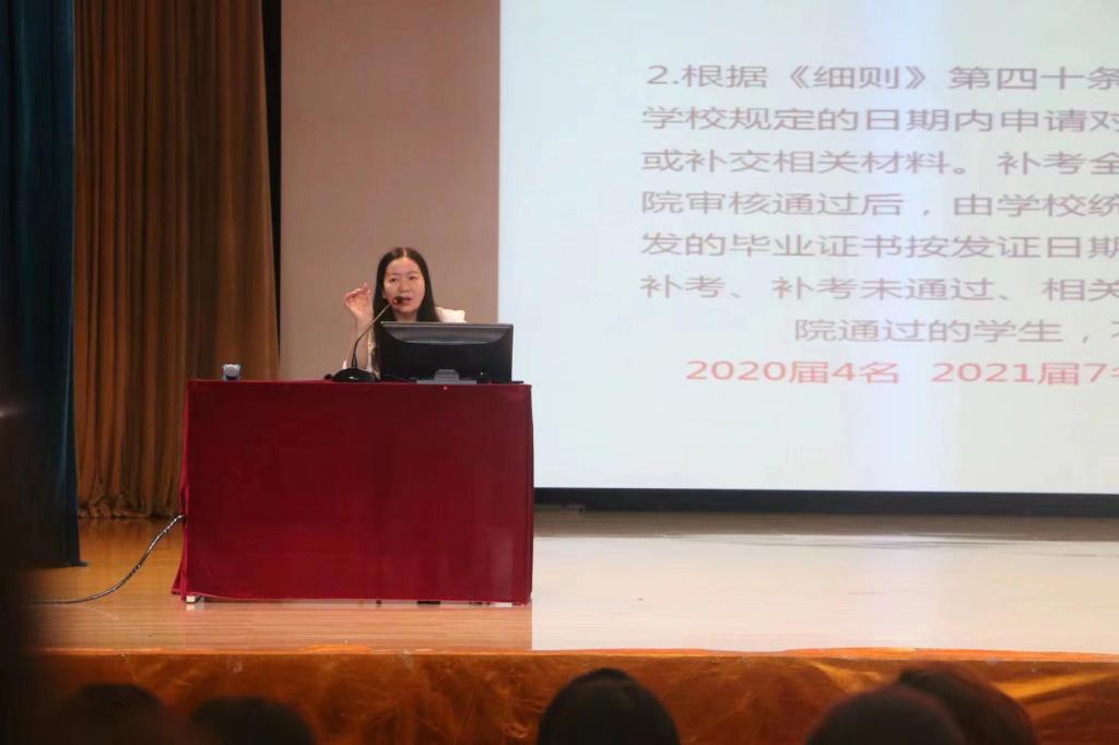 会议在澳门电子pg游戏官网全体参会师生奏唱国歌的庄严气氛中拉开帷幕。吴亚飞向同学们详细解读了《中华人民共和国职业教育法》《高等职业学校普通护理专业顶岗实习标准》《职业学校学生实习管理规定》中关于实习的相关规定,结合多起实习期间案例进行了分析,让学生从国家法律、规定层面认识到实习的重要性和严肃性。刘欣为学生讲解了实习流程和实习考核手册的填写要求,姚飞向同学们强调了实习期间租房、财产、人身安全等内容,何宇带领大家一起学习了当前就业形势,号召大家珍惜实习生活,依靠自己的努力为将来就业打好坚实基础。张成做实习总动员,希望同学们严格遵守实习管理规定,将实习安全放在首位,脚踏实地完成实习任务,预祝同学们诸事顺利,未来可期。