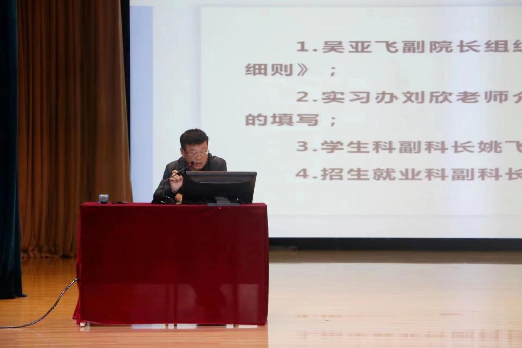 2023年6月5日-6日澳门电子pg游戏官网在图书馆报告厅召开了2024届1100多名学生的实习动员大会,澳门电子pg游戏官网院长张成、副院长吴亚飞、学生管理科副科长姚飞、招生就业科副科长何宇、实习办刘欣老师、全体辅导员班主任以及全体2024届学生参加了会议,会议由教学科副科长孙会娟主持,报告分2场进行。