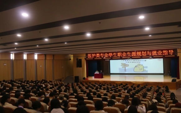 为帮助大二学生明确职业意向、了解当前就业形势、提升就业竞争力,9月20日下午,澳门电子pg游戏官网联合医学院在图书馆报告厅,特约陕西纵享母婴管理集团李小妮总经理为500多名医护类学生开展了大学生职业生涯规划与就业指导的讲座。讲座由澳门电子pg游戏官网招生就业科科长何宇主持。