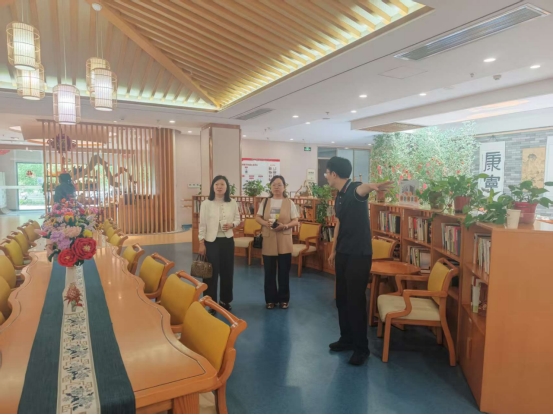 在中心负责人张杨的陪同下,参观了康复治疗区、长者居住区、休闲活动区等核心区域,详细了解中心“医疗+养老+康复”一体化运营模式以及智慧健康监测、个性化照护方案等特色服务。