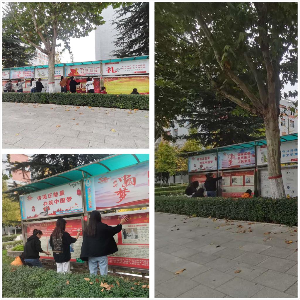 宣传设施是现代宣传工作的重要组成部分,是展现学校价值观念、师生风貌、校园精神文化的重要载体。我院学生党支部全体教师党员及20余名入党积极分子向优秀党员学习,发扬吃苦耐劳精神,提起水桶,拿上抹布,对新校区宣传栏进行了护理清洁。