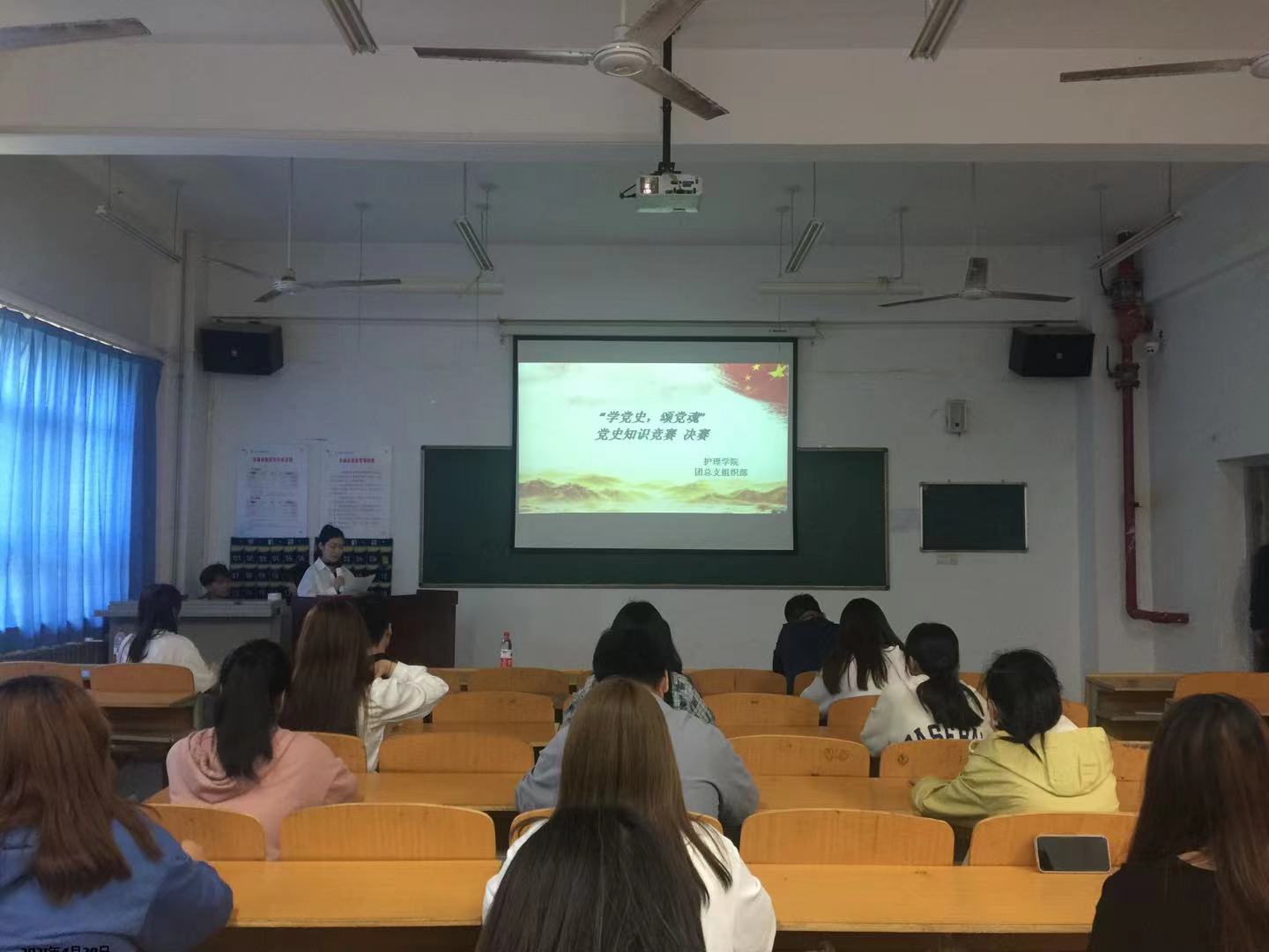 4月29日下午,“学党史,颂党魂”党史知识竞赛决赛在公南105教室举行。本次比赛采用现场竞赛现场评比的方式,题目包含党史党章、党的理论知识等,比赛试题分为必答题、抢答题、风险题三种形式,共40题每题10分共400分。在抢答环节,参赛成员通过手机平台上抢答,答题错误还可以再次抢答。各参赛成员准备充分,充满自信,全场氛围激烈,展示了他们近期党史知识学习的成果。经过激烈的角逐,护理高职2004班陈金、护理高职2006班陈倩茹获得第三名,护理高职2004班张栋栋、护理高职2004班雷骐伊获得第二名,护理高职2003班贾倩茹荣获了冠军。