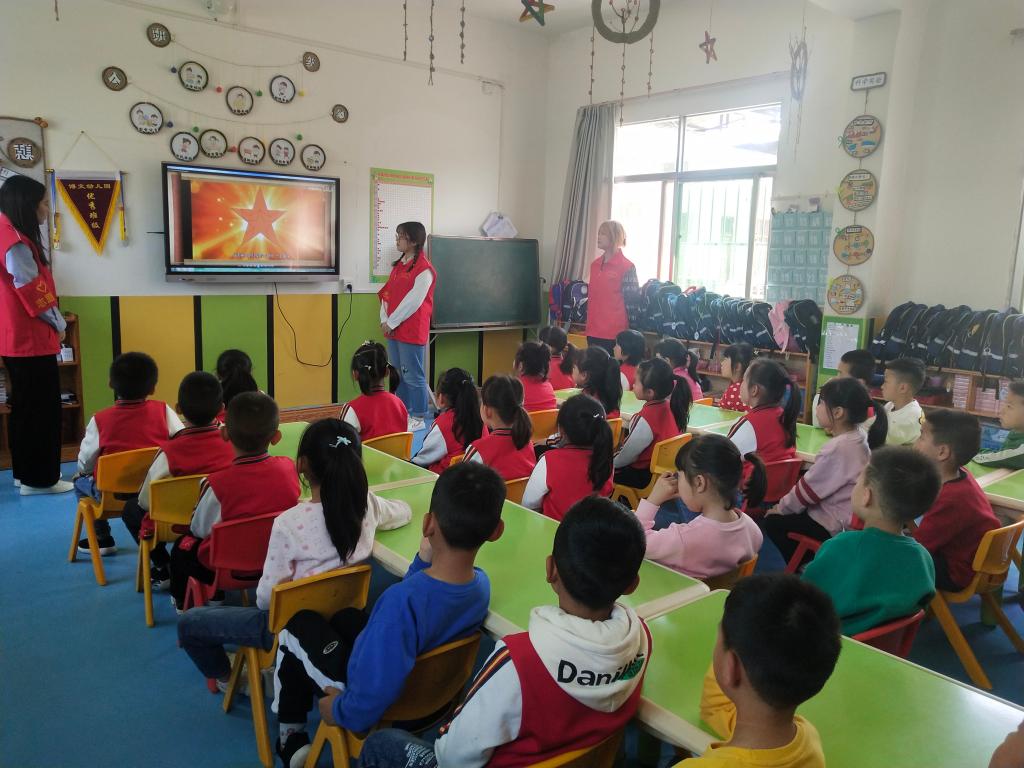 4月29日,澳门电子pg游戏官网团总支青年志愿者服务队10名志愿者赴博文幼儿园开展了以“童心向党,红色传承”为主题的志愿服务活动。