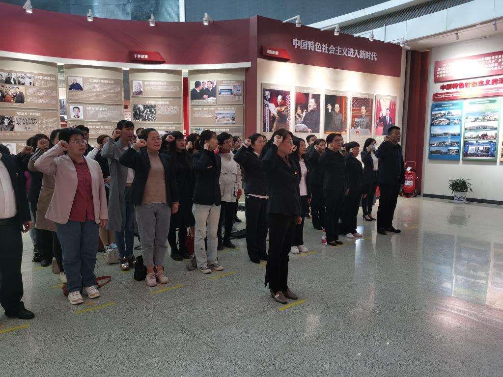 党员同志被先辈们自力更生、艰苦奋斗、开拓进取的精神所感动。在我院党总支副书记李晓乾带领下,面对党旗,紧握右手,重温入党誓词,坚定入党初心,践行党员使命。