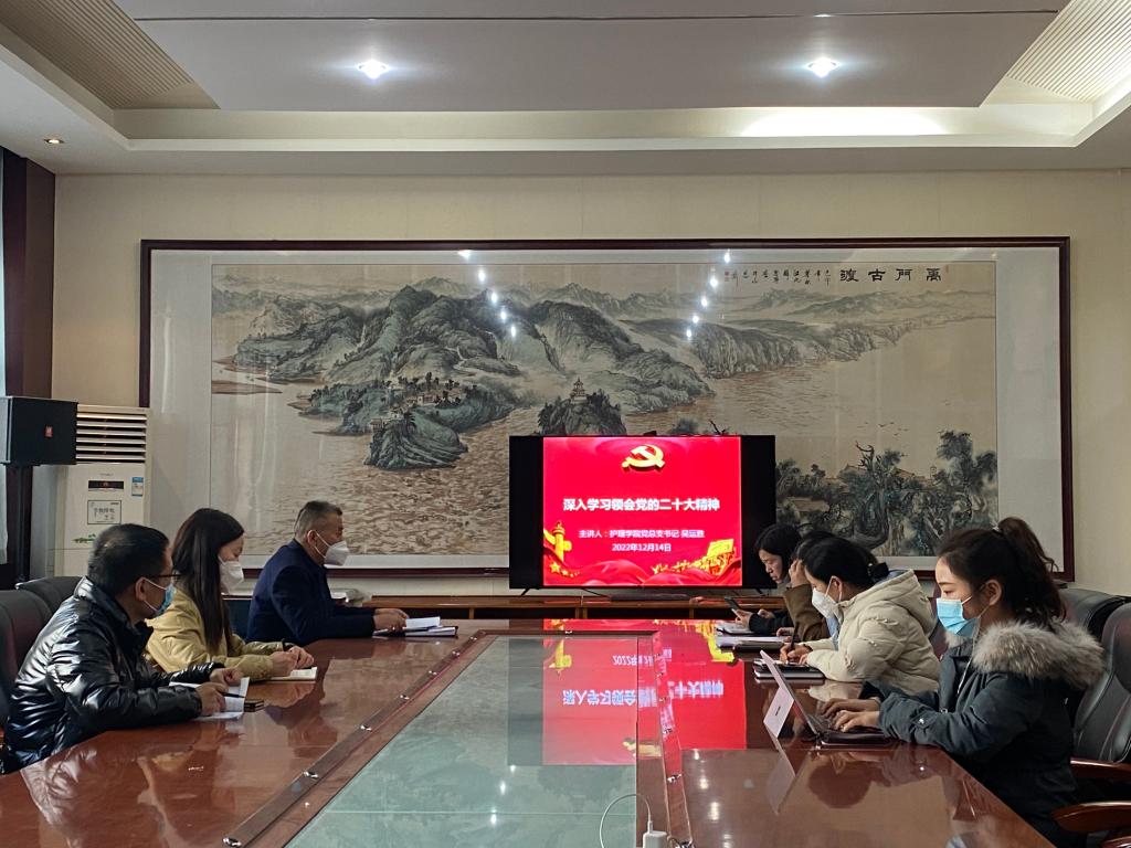 12月14日下午,澳门电子pg游戏官网党总支在医训楼第一会议室开展学习贯彻党的二十大精神主题宣讲会。宣讲会由澳门电子pg游戏官网党总支书记吴运胜作宣讲,不在校党员通过腾讯会议参加宣讲会。澳门电子pg游戏官网党总支副书记周梦花主持宣讲会。