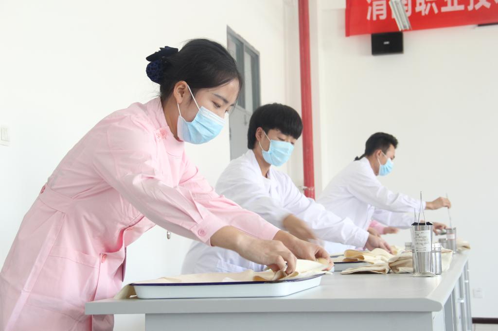 9月23日下午,校级学生职业技能大赛(护理组)在医训楼北楼410实训室举行。学校教务处实训科科长王秋焕、澳门电子pg游戏官网副院长吴亚飞观摩了比赛,内护教研室主任郭建民等7名经验丰富的教师担任评委,共有16名学生参加了本次大赛。
