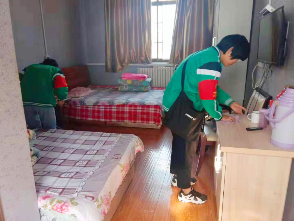 志愿者帮助老人整理内务