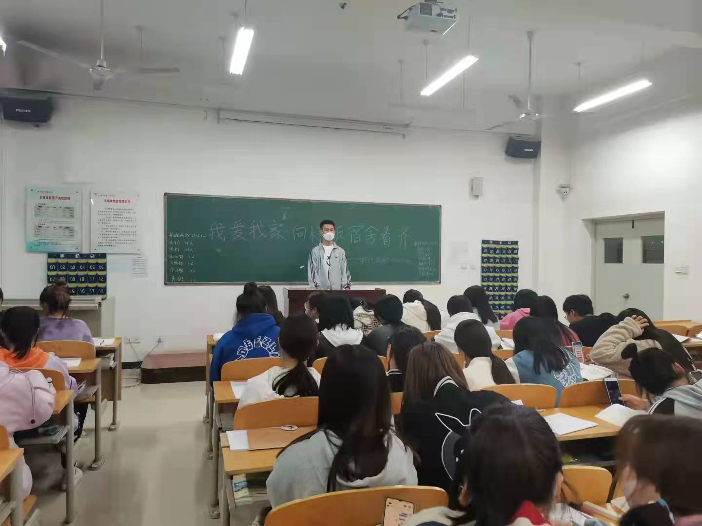 为了构建健康和谐的宿舍环境,10月25日晚,澳门电子pg游戏官网各班召开了“我爱我家,向样板宿舍看齐”的主题班会。本次班会由各班班长主持,全体学生参加。