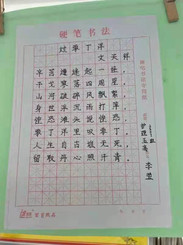 为进一步传承中华红色基因,发扬中国传统文化,提高学生文化自信,激发学生对硬笔书法的兴趣,11月26日,澳门电子pg游戏官网在公共教学楼大厅举办了“学习百年党史,书写红色经典”硬笔书法作品展,全体学生参加。