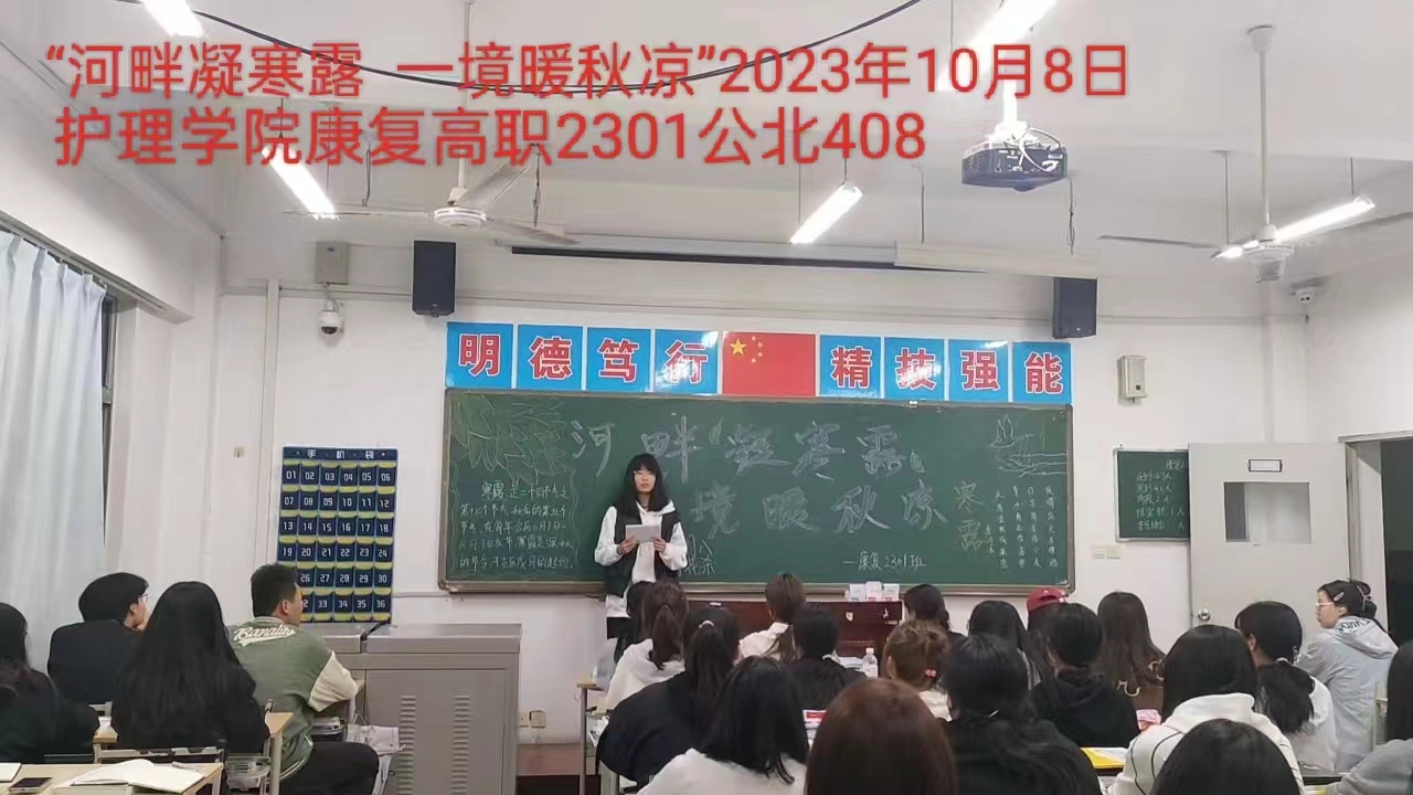 寒露,是我国农历二十四节气中的第十七个节气,也是秋季的第五个节气,《月令七十二候集解》说:“九月节,露气寒冷,将凝结也。”自此,露气重而稠,稠而将凝,再过半月,将凝为霜降。10月8日晚,澳门电子pg游戏官网团总支开展“河畔凝寒露 一境暖秋凉”主题活动。