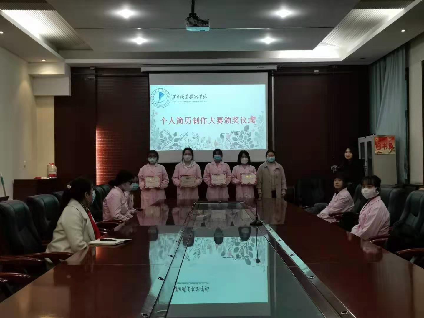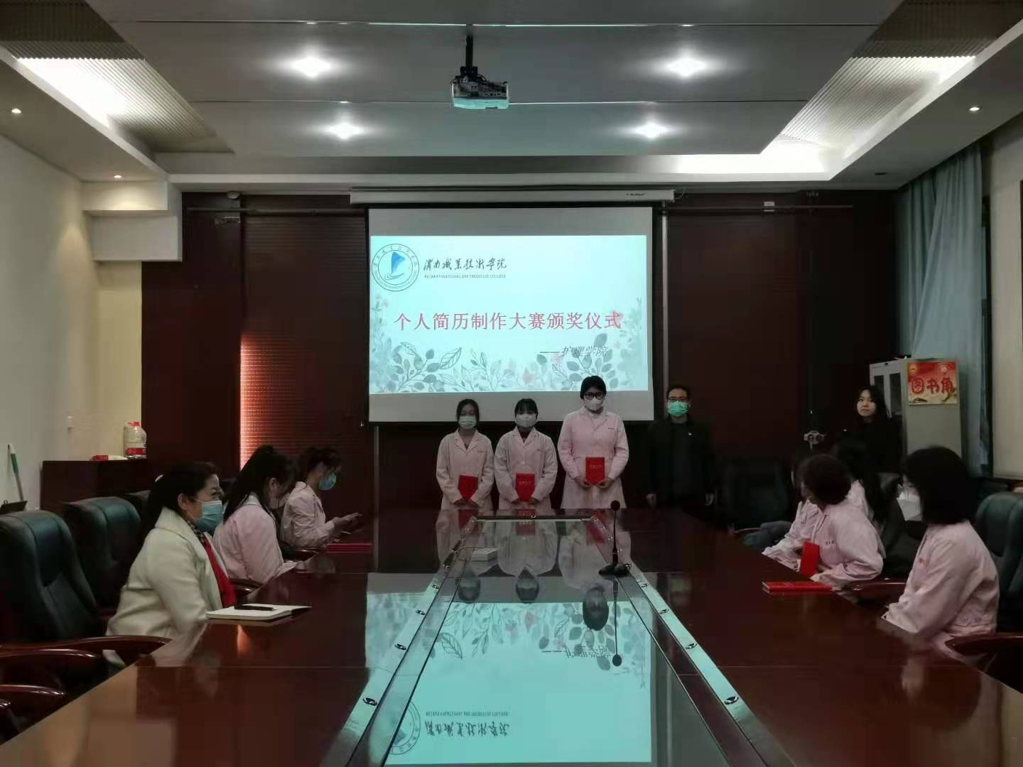 展现个人风采,了解简历百态。12月22日下午5:30,澳门电子pg游戏官网个人简历设计大赛决赛在医训楼第一会议室落下帷幕。澳门电子pg游戏官网党总支副书记马淑红、招生就业科副科长何宇、就业科干事刘凯及就业创业学会成员及学生代表参加仪式。