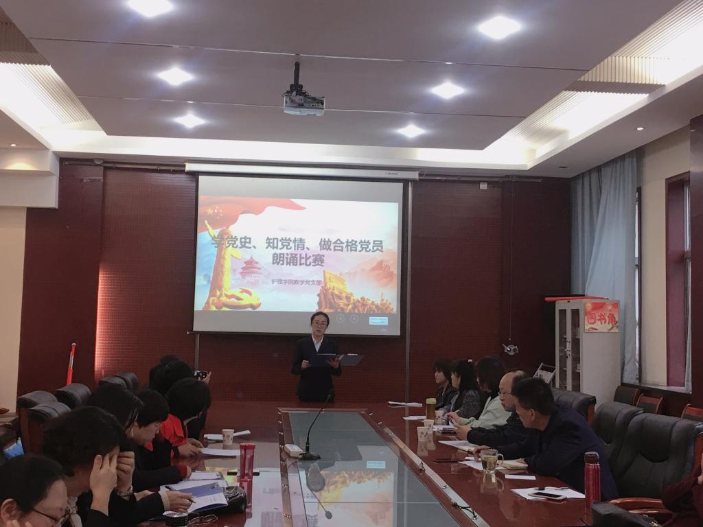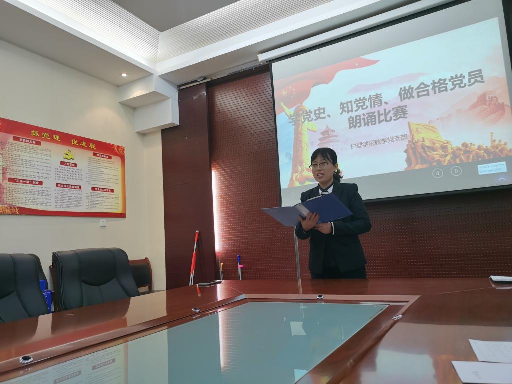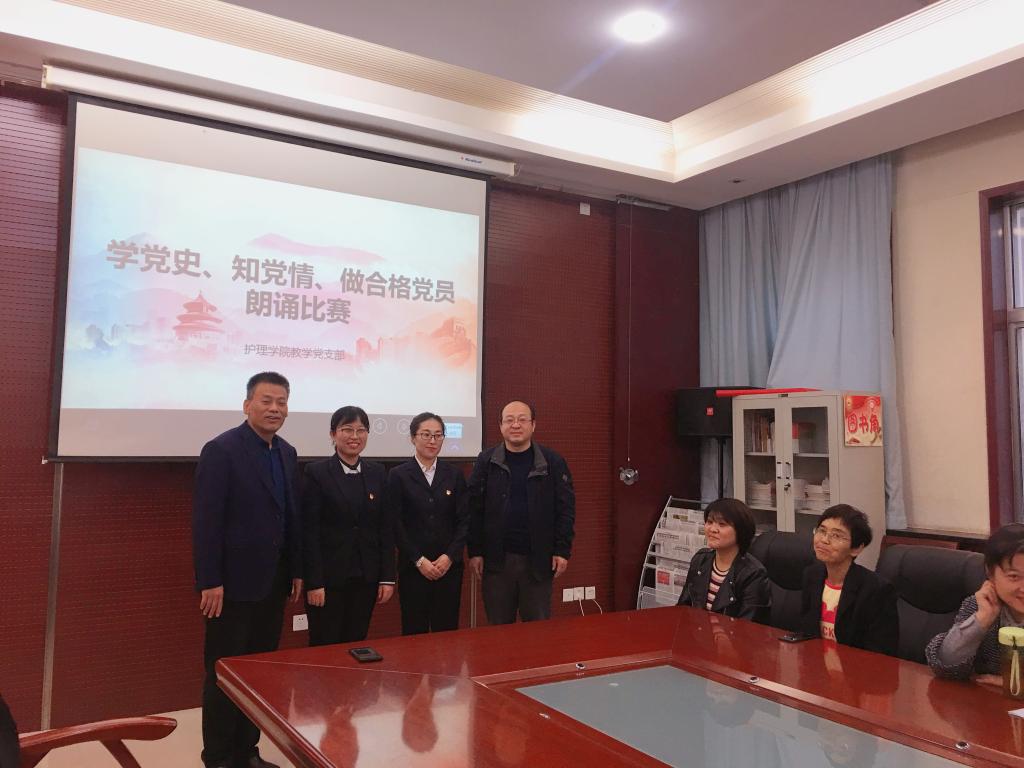 10月30日下午,为了庆祝中国共产党成立98周年,重温党的光辉历程,弘扬党的优良传统,坚定理想信念,澳门电子pg游戏官网教学党支部在医训南楼第一会议室举行了“学党史知党情 做合格党员”朗诵比赛。我院党总支书记吴运胜、院长张成、副院长吴亚飞、副书记马淑红出席朗诵会并担任评委,共十二名党员参加了朗诵比赛。
