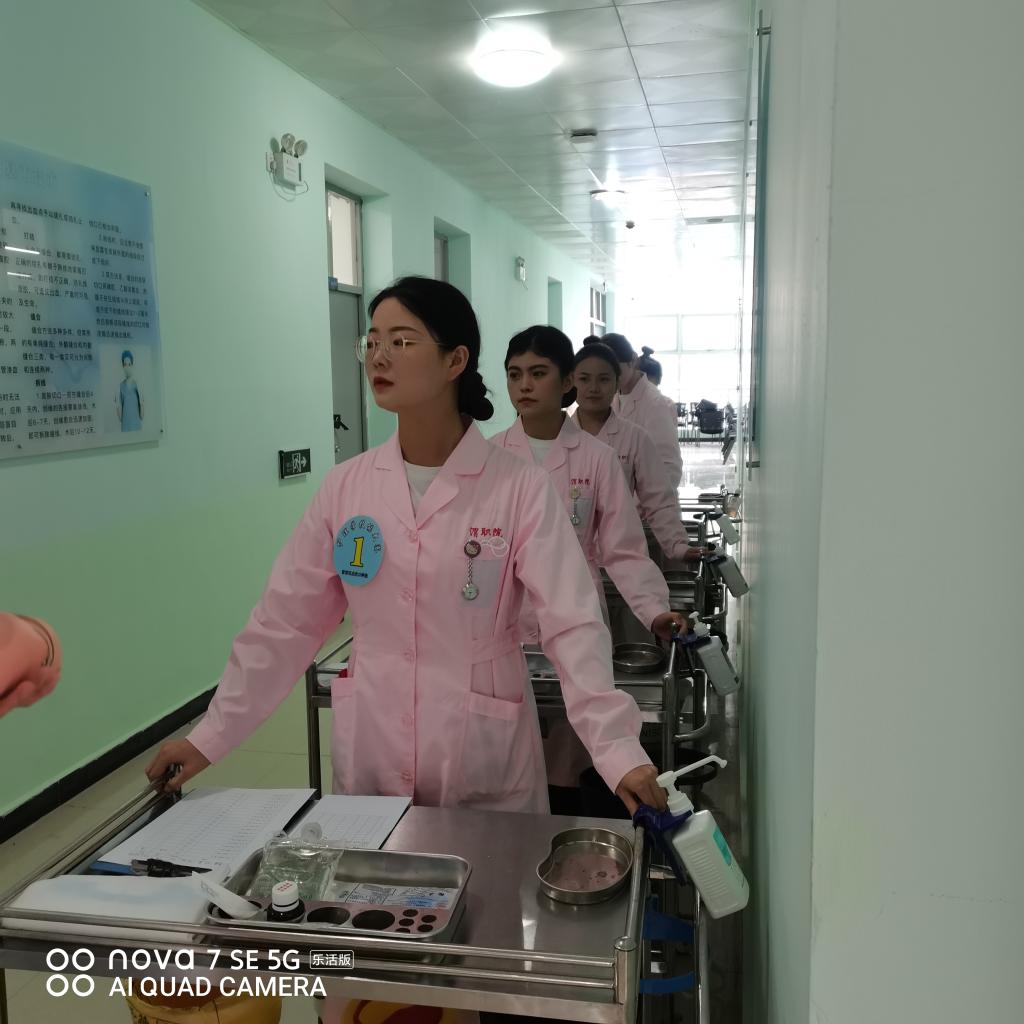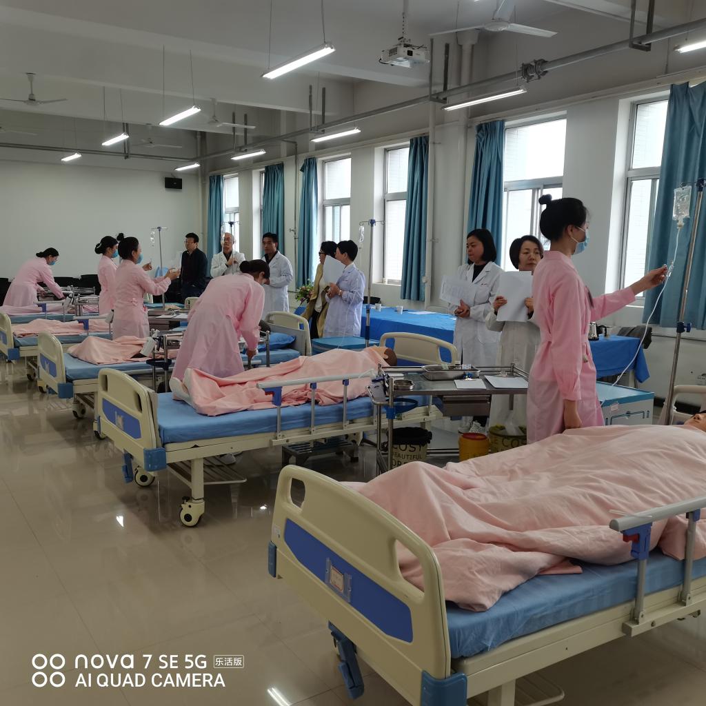 按照《关于开展2021年技能大赛月活动的通知》(渭职院办发〔2021〕138号)精神,为加强学生专业知识和实践操作水平,达到以赛促教、以赛促学的目的,澳门电子pg游戏官网于10月8日下午在医训楼北楼5楼举行了2021年校级护理技能大赛。院长张成、副院长任秋爱、教学科长王媛出席了比赛,内护教研室主任郭建民等5名专业老师担任大赛评委。经过前期的初赛,最终13名学生进入本次决赛。